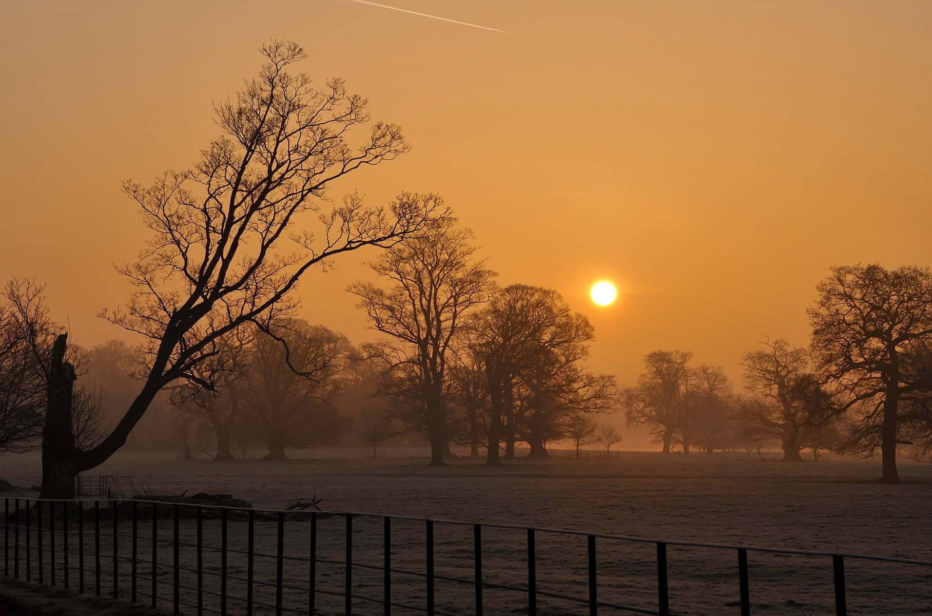 A winter sunset with vibrant sky and a leafless tree on snowy land Winter sunset with snowy road and barren trees in a winter landscape Winter sunset landscape with bare trees and frost covered ground in winter Winter sunset over snowy mountains with pine trees and glowing orange sky Snow covered trees and mountains during winter sunset in a scenic landscape A winter sunset scene with a frosty river surrounded by bare trees and glowing sky Winter sunset with icy frost on a chain link fence and a snowy landscape in the background Bare trees in winter landscape at sunset with orange sky and sun visible